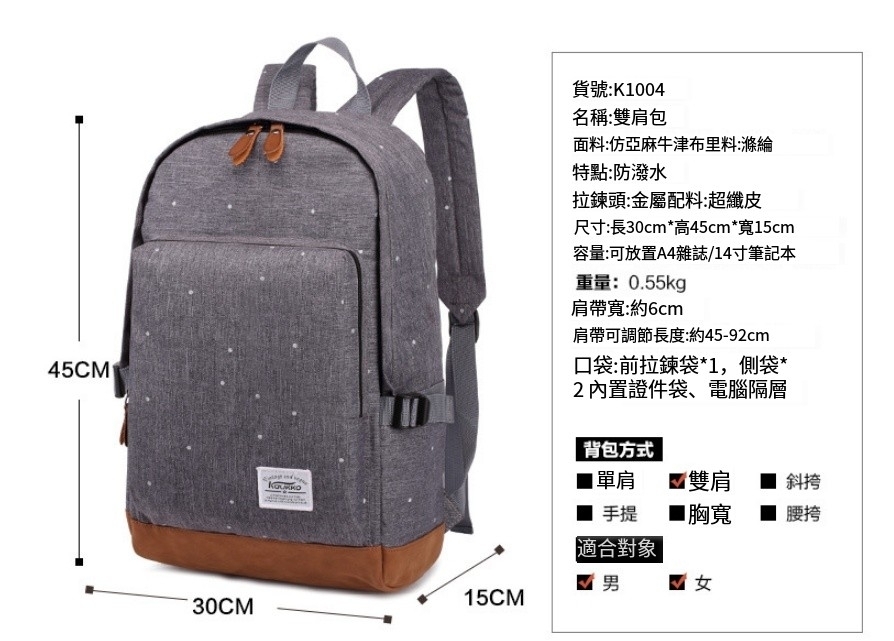 熱賣男女適用電腦背包 書包 運動休閒包包【寶蘭色】