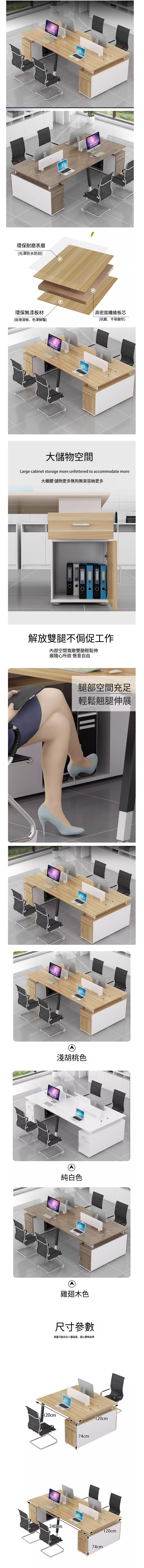熱賣電腦辦公桌組合(雙人位+櫃子【暖白】)長120cm寬120cm高74cm