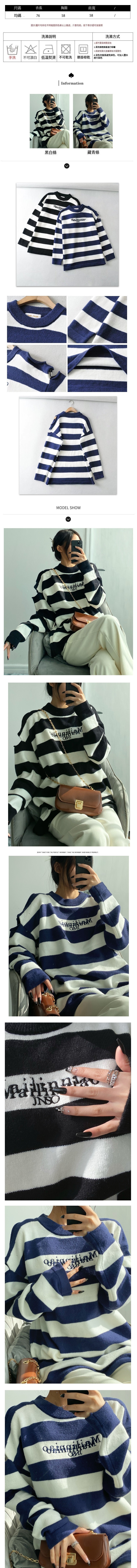 熱賣撞色條紋衛衣(藏青條)(均碼)