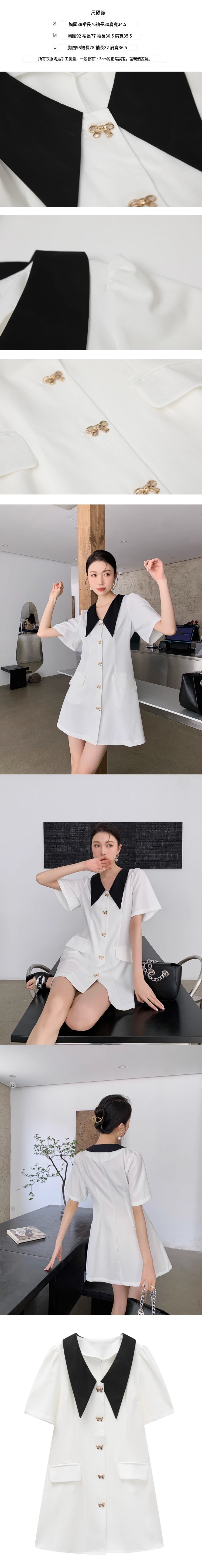 熱賣撞色尖領A字型連衣裙(白色)(S-L碼)(下單後聯絡客服確認發貨尺碼)