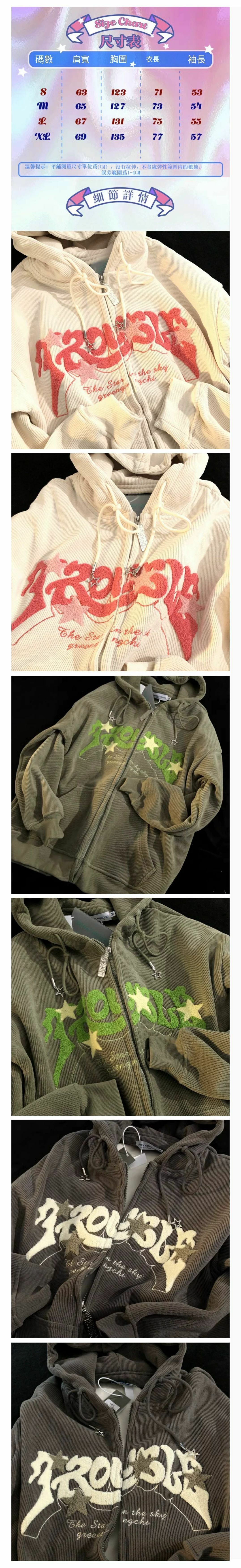熱賣燈芯絨厚款刺繡連帽衛衣【杏色】【S-XL碼】(下單後請聯絡客服確認發貨尺碼)