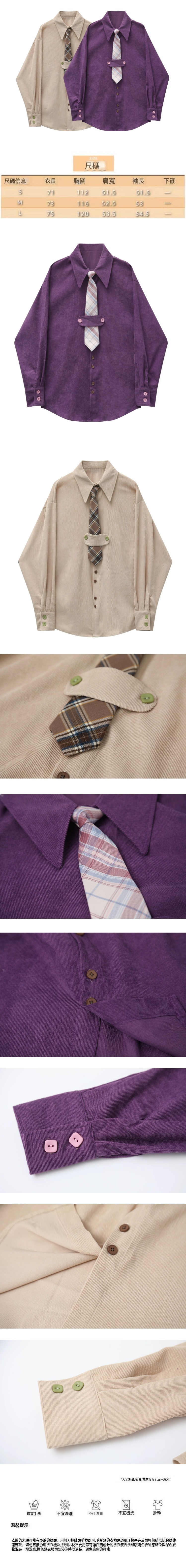熱賣燈芯絨領帶領結襯衫(紫色)(SX-L碼)(下單後聯絡客服確認發貨尺碼)