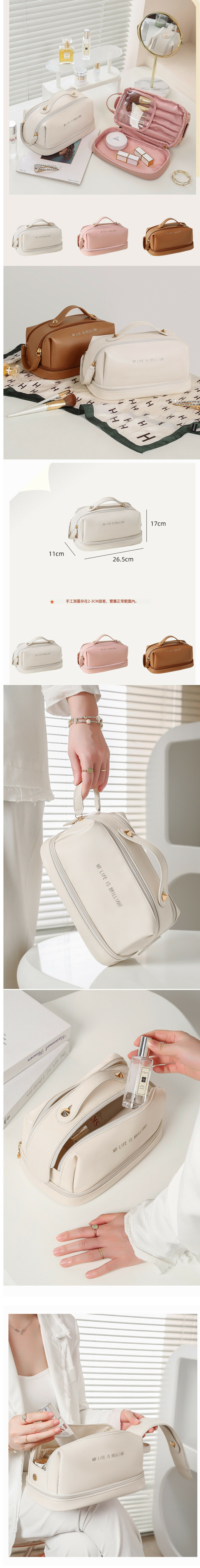 熱賣化妝包 手提包【咖啡色】規格【雙拉鍊化妝包】