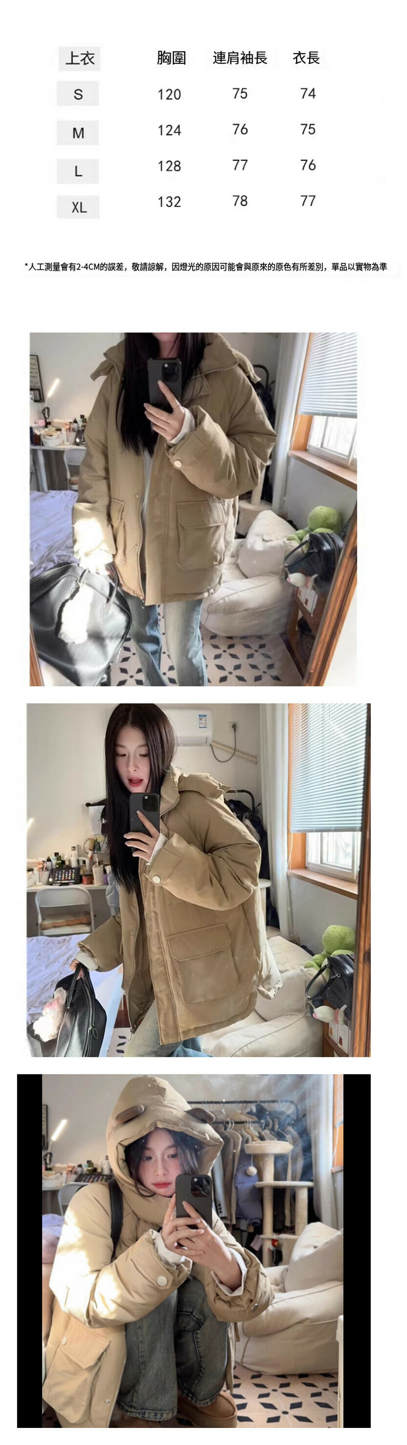 熱賣棉衣外套【卡其】尺碼【S碼—XL碼】【下單後請聯絡客服確認發貨尺碼】