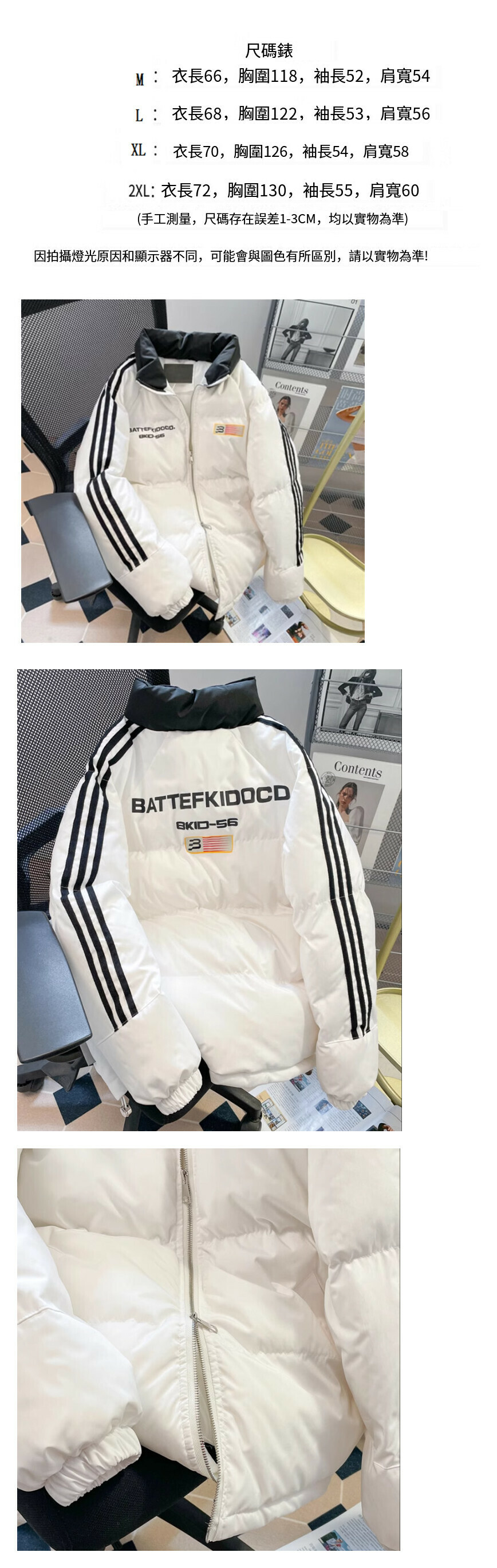 熱賣棉衣外套【白色】尺碼【M碼—2XL碼】【下單後請聯絡客服確認發貨尺碼】