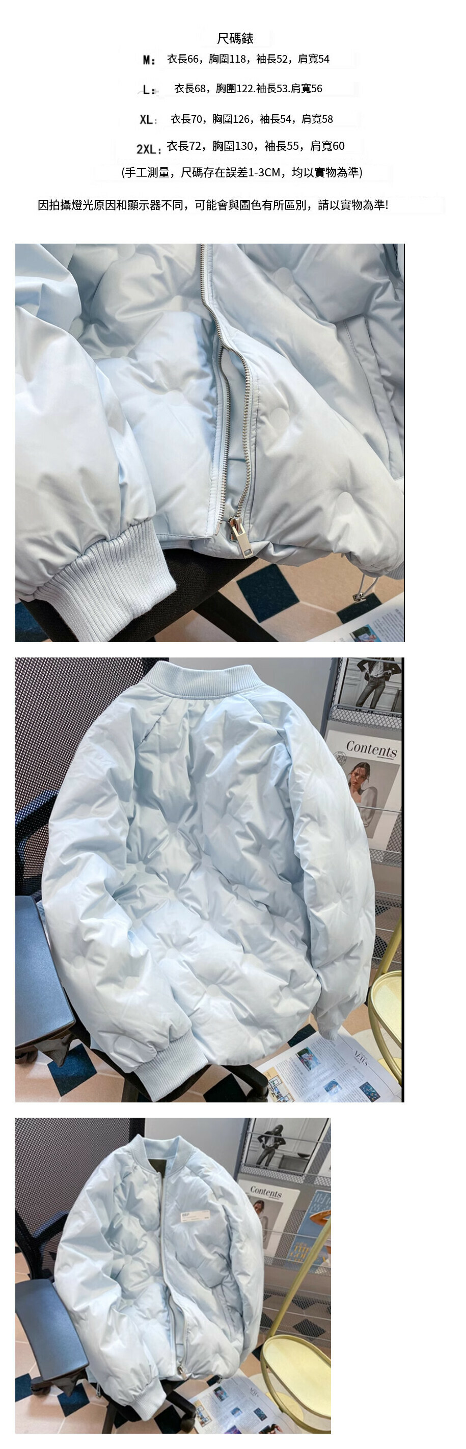 熱賣棉衣外套【淺藍色】尺碼【M碼—2XL碼】【下單後請聯絡客服確認發貨尺碼】