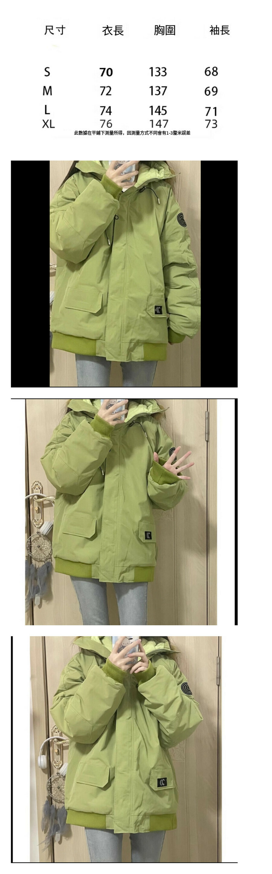 熱賣棉衣外套【淺綠色】尺碼【S碼—XL碼】【下單後請聯絡客服確認發貨尺碼】