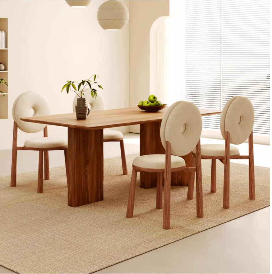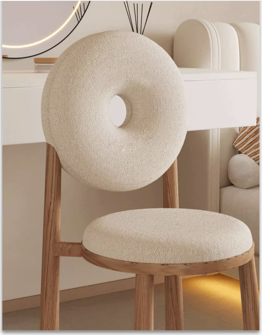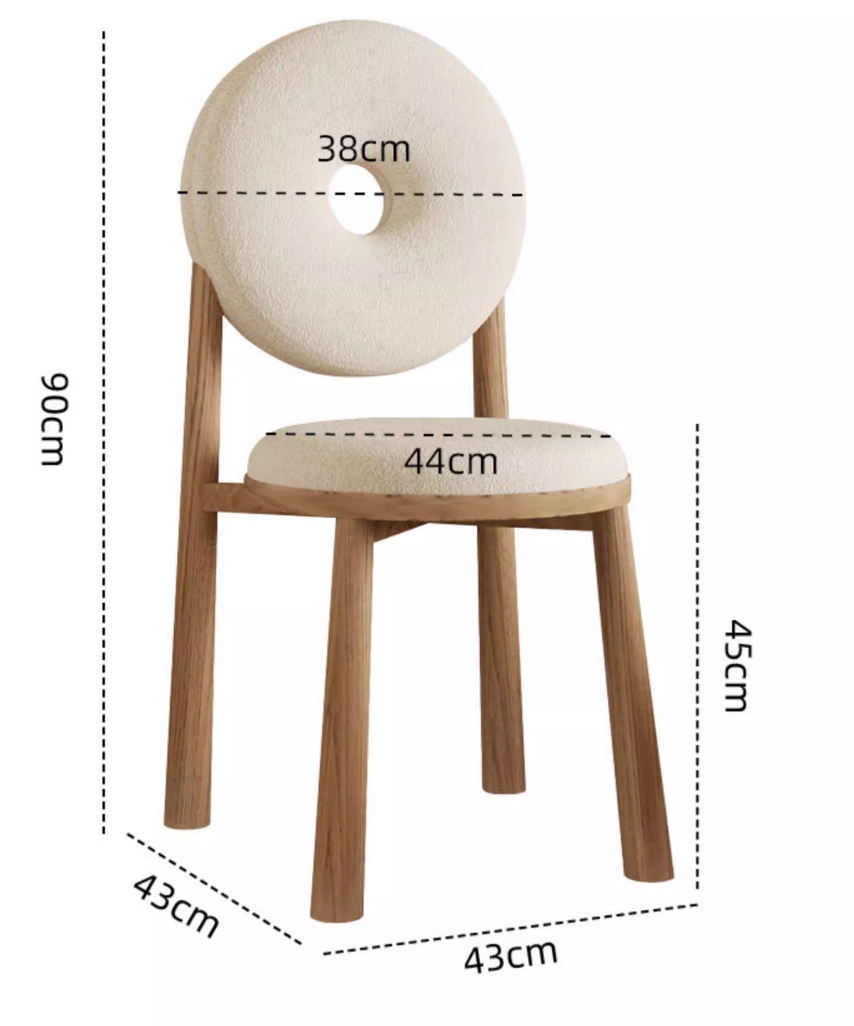 熱賣奶油風羊羔絨甜甜圈餐椅(藍色*木紋腿)(尺寸:43*43*90CM)