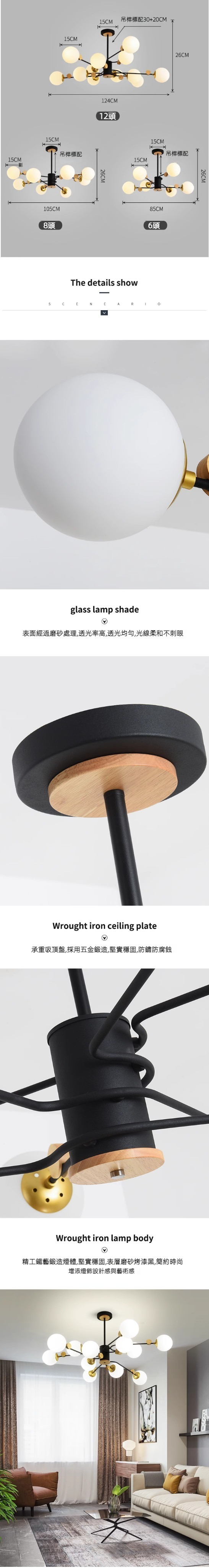 熱賣創意分子吊燈(黑色6頭/暖光)
