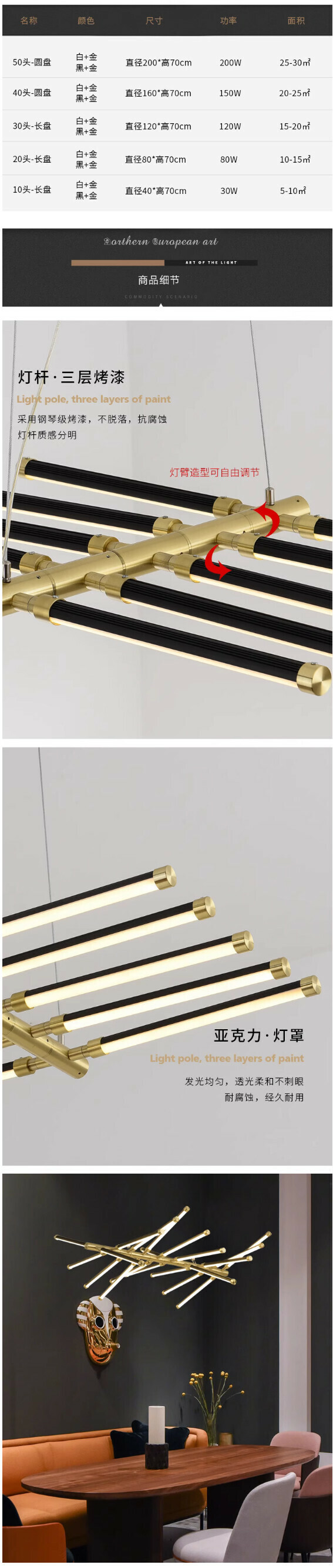 熱賣創意異形魚骨吊燈(10頭黑+金色/無極調光)
