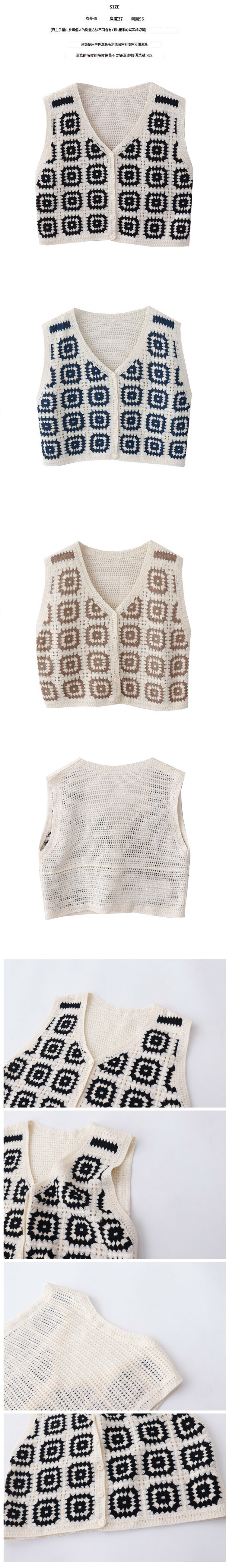熱賣鉤花鏤空格子馬甲【藏青色】【均碼】