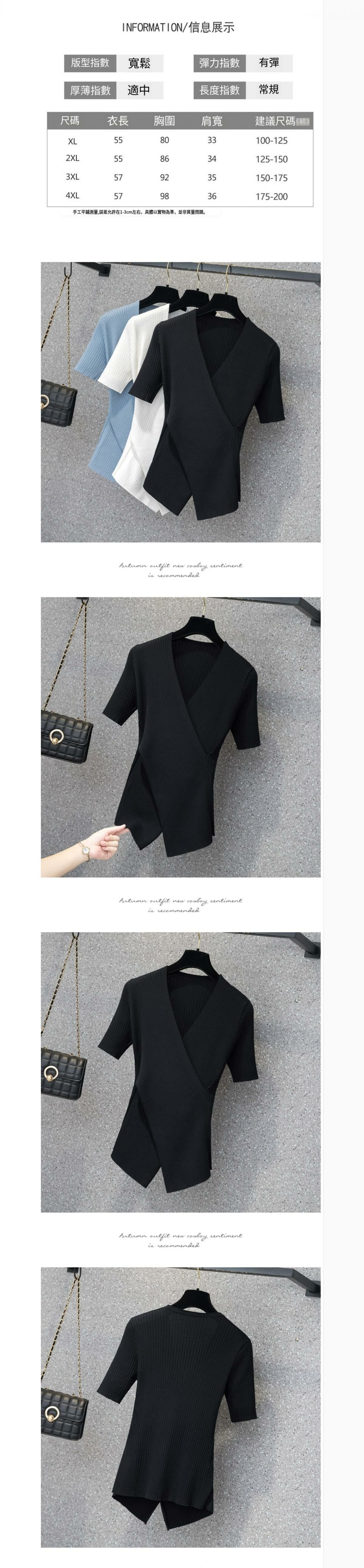 熱賣交叉針織V領T恤【黑色】【XL-4XL碼】(下單後請聯絡客服確認發貨尺碼)