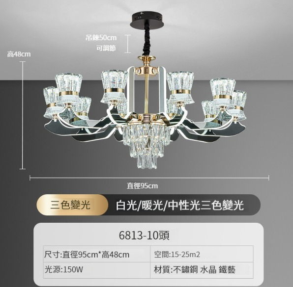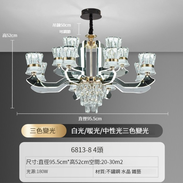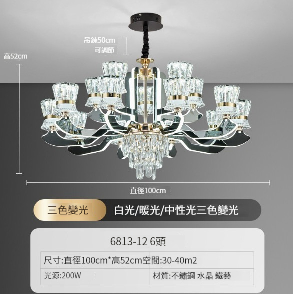 熱賣水晶吊燈【6頭水晶吊燈-輕奢金】