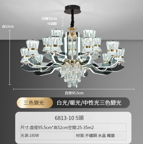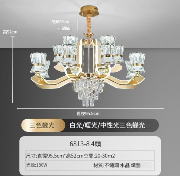 熱賣水晶吊燈【8頭水晶吊燈-輕奢金】
