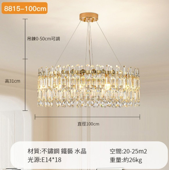 熱賣水晶吊燈【水晶-圓80cm-144W三色變光】