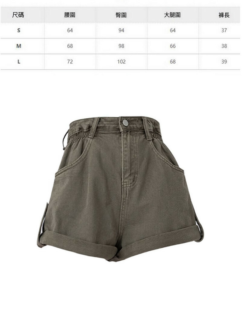 熱賣翻邊牛仔短褲(灰綠色 L碼)