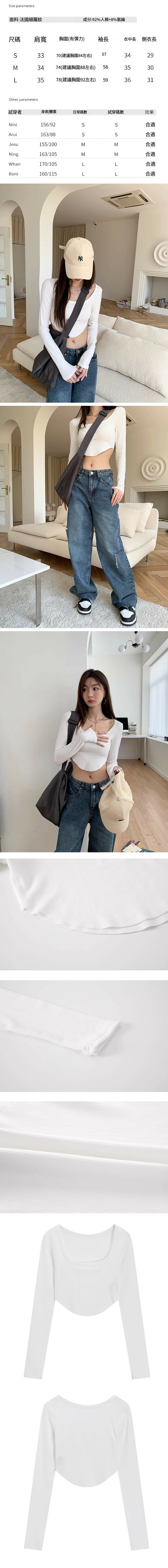 熱賣弧露腰形下擺長袖T恤(白色)(S-L碼)(下單後聯絡客服確認發貨尺碼)