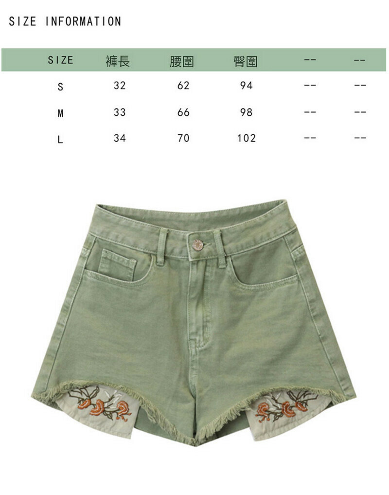 熱賣牛仔短褲薄繡花口袋(綠色 S碼-L碼)(下單後請聯絡客服確認發貨尺碼)