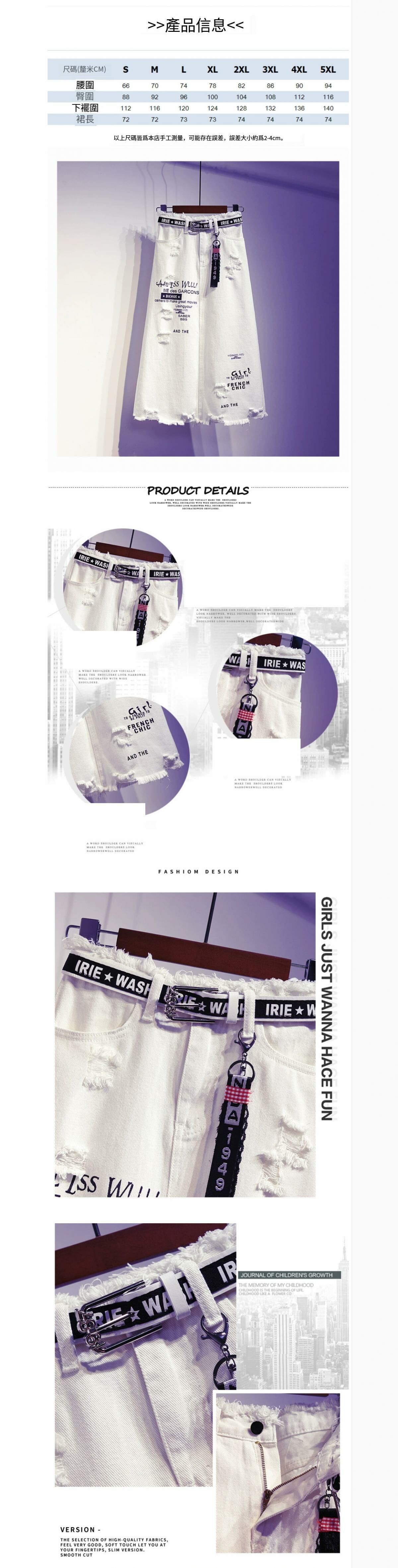 熱賣牛仔半身裙+腰帶【白色】【S-5XL碼】(下單後請聯絡客服確認發貨尺碼)