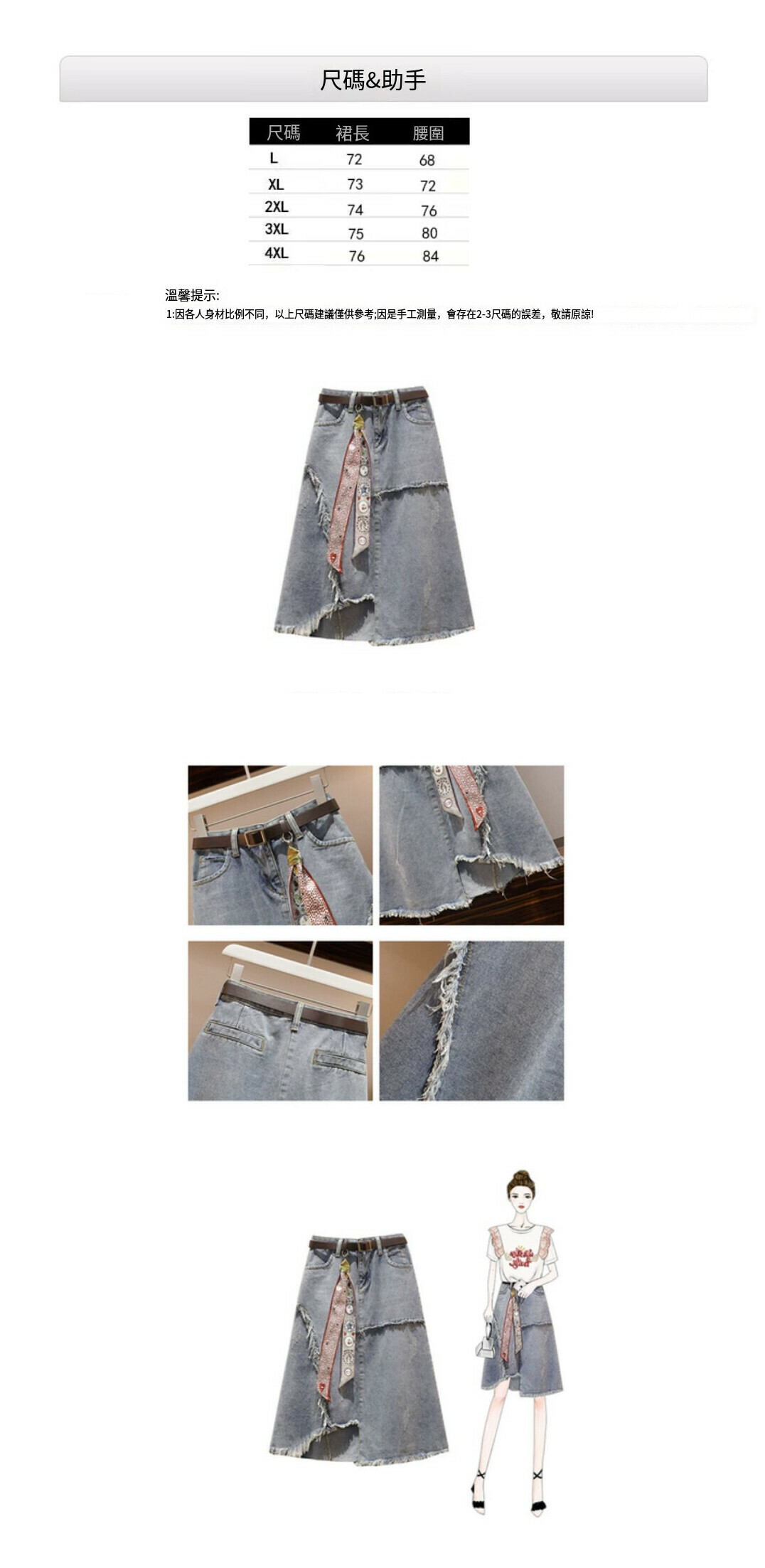 熱賣牛仔半身裙【圖片色(不含皮帶)】【L-4XL碼】(下單後請聯絡客服確認發貨尺碼)