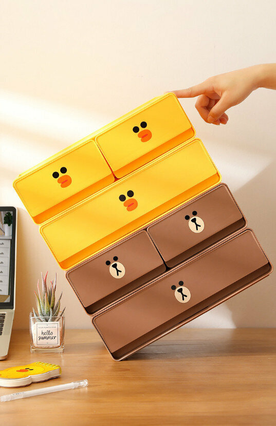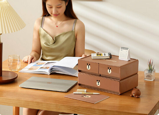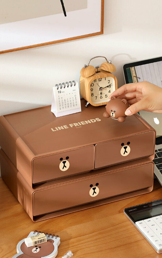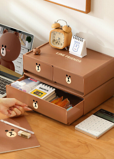 熱賣桌面化妝品分收納盒(BROWN【雙層三格抽屜】)
