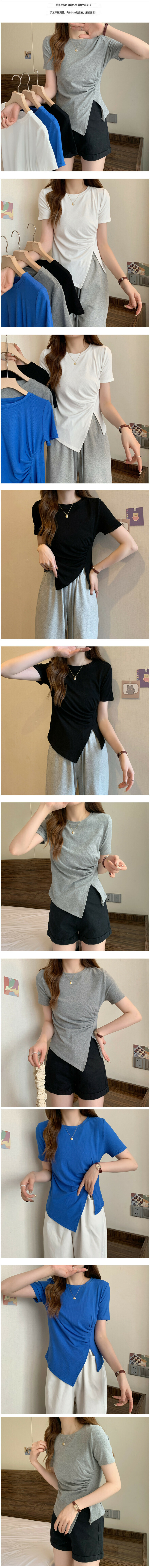 熱賣斜開叉褶皺短袖上衣【白色】【均碼】