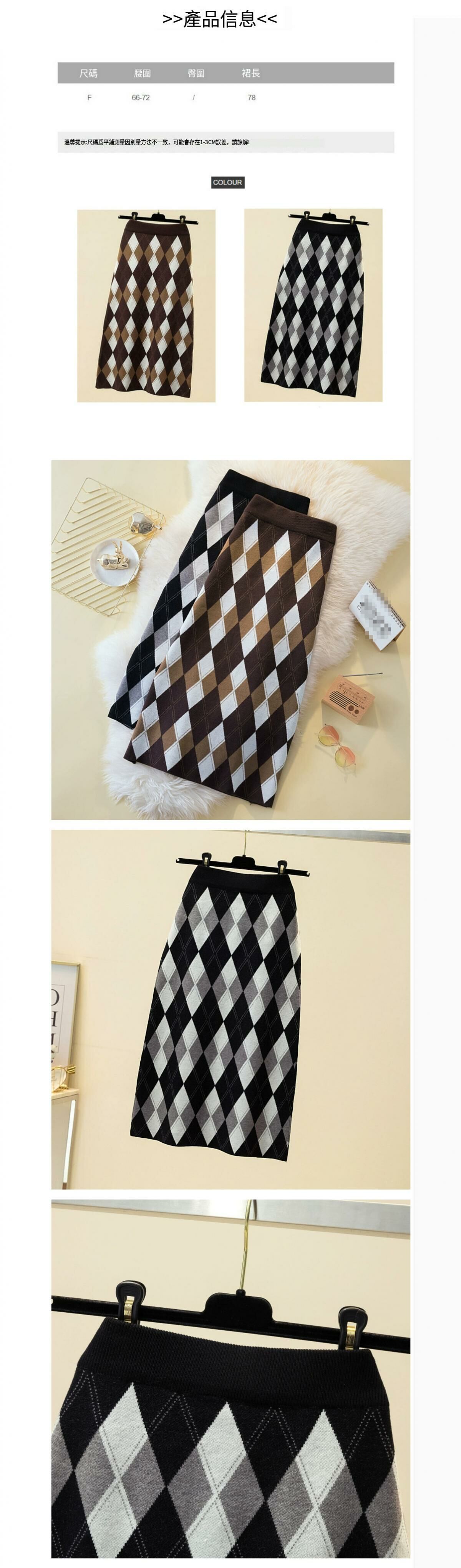 熱賣菱形格針織半身裙【咖啡色】【S-XL碼】(下單後請聯絡客服確認發貨尺碼)