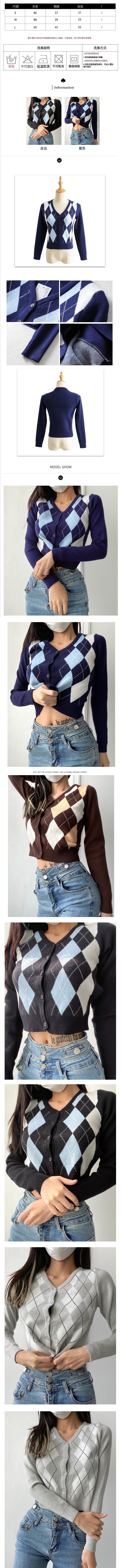 熱賣菱格長袖針織開衫(灰色)(S-L碼)(下單後聯絡客服確認發貨尺碼)