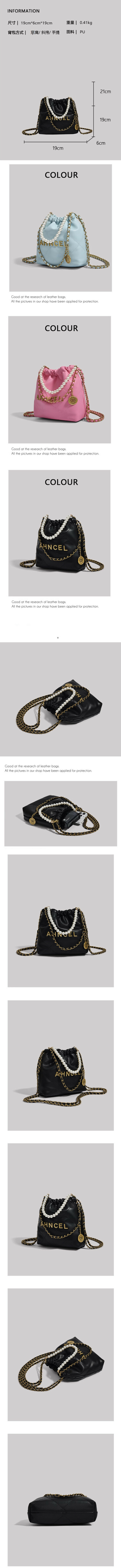 熱賣菱格珍珠鏈條水桶包單肩斜挎包【藍色】【尺寸:19cm*6cm*19cm】