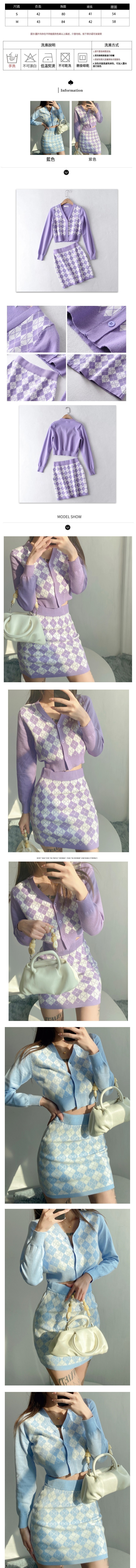 熱賣菱格V領針織毛衣+包臀半裙兩件套(藍色)(S/M碼)(下單後聯絡客服確認發貨尺碼)