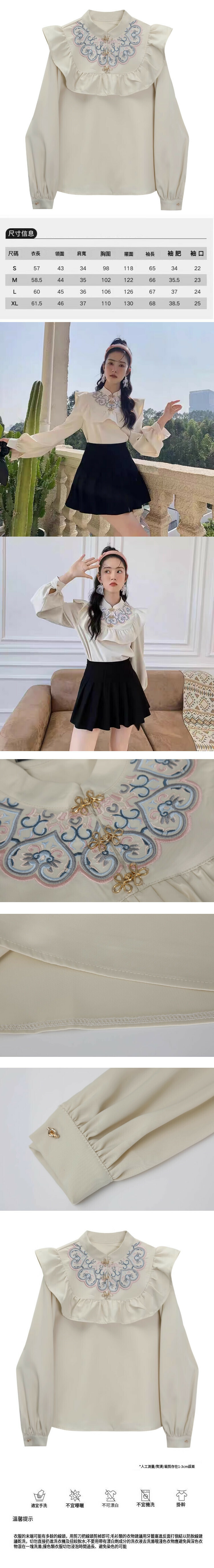 熱賣娃娃領盤扣襯衫(杏色)(S-XL碼)(下單後聯絡客服確認發貨尺碼)