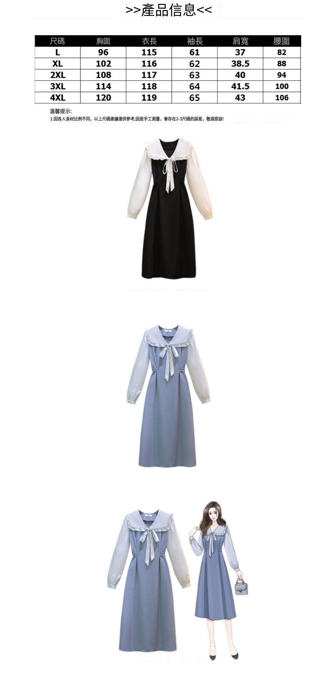 熱賣娃娃領連衣裙【黑色】【L-4XL碼】(下單後請聯絡客服確認發貨尺碼)