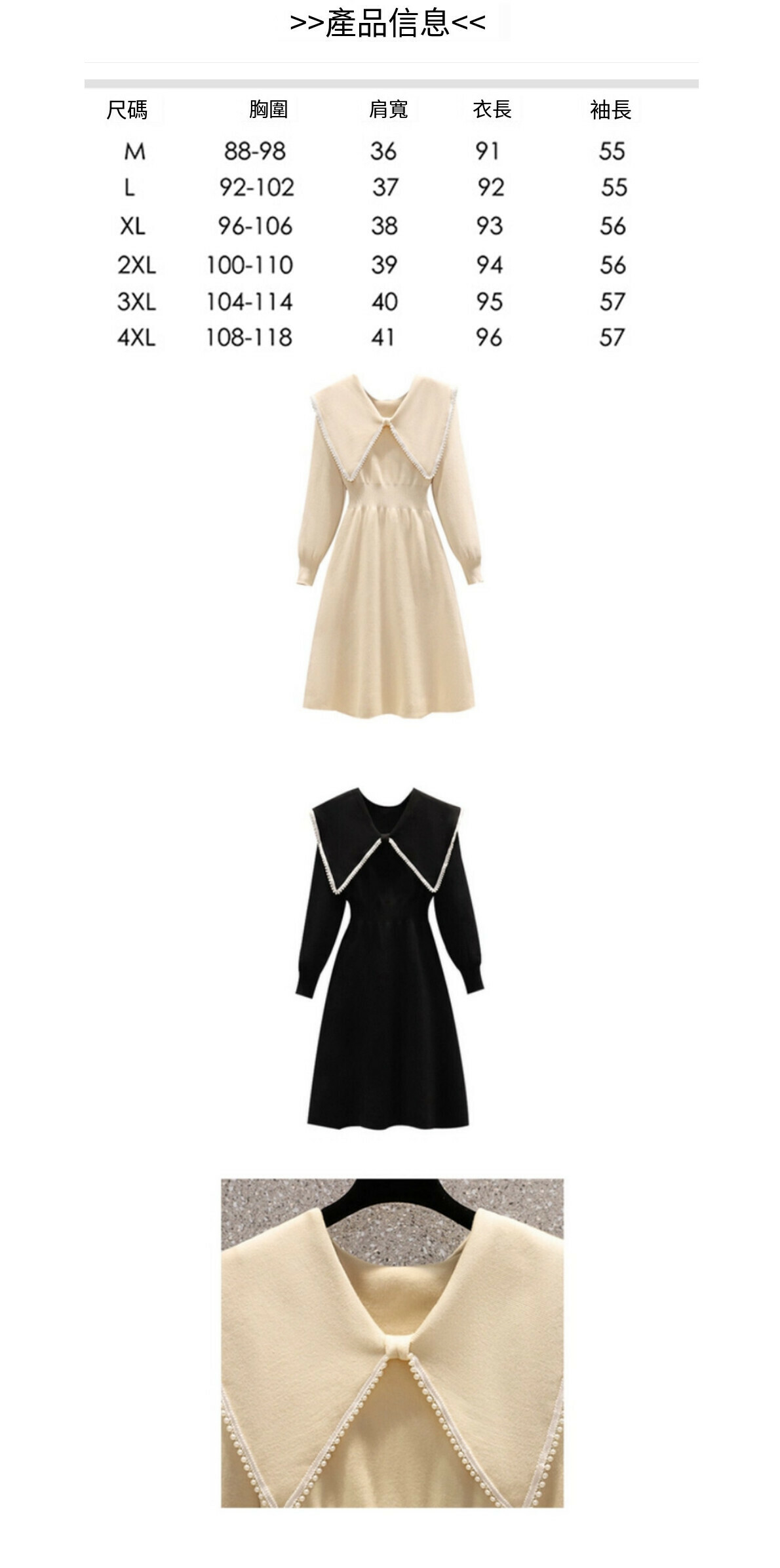 熱賣娃娃領針織連衣裙【杏色】【M-4XL碼】(下單後請聯絡客服確認發貨尺碼)