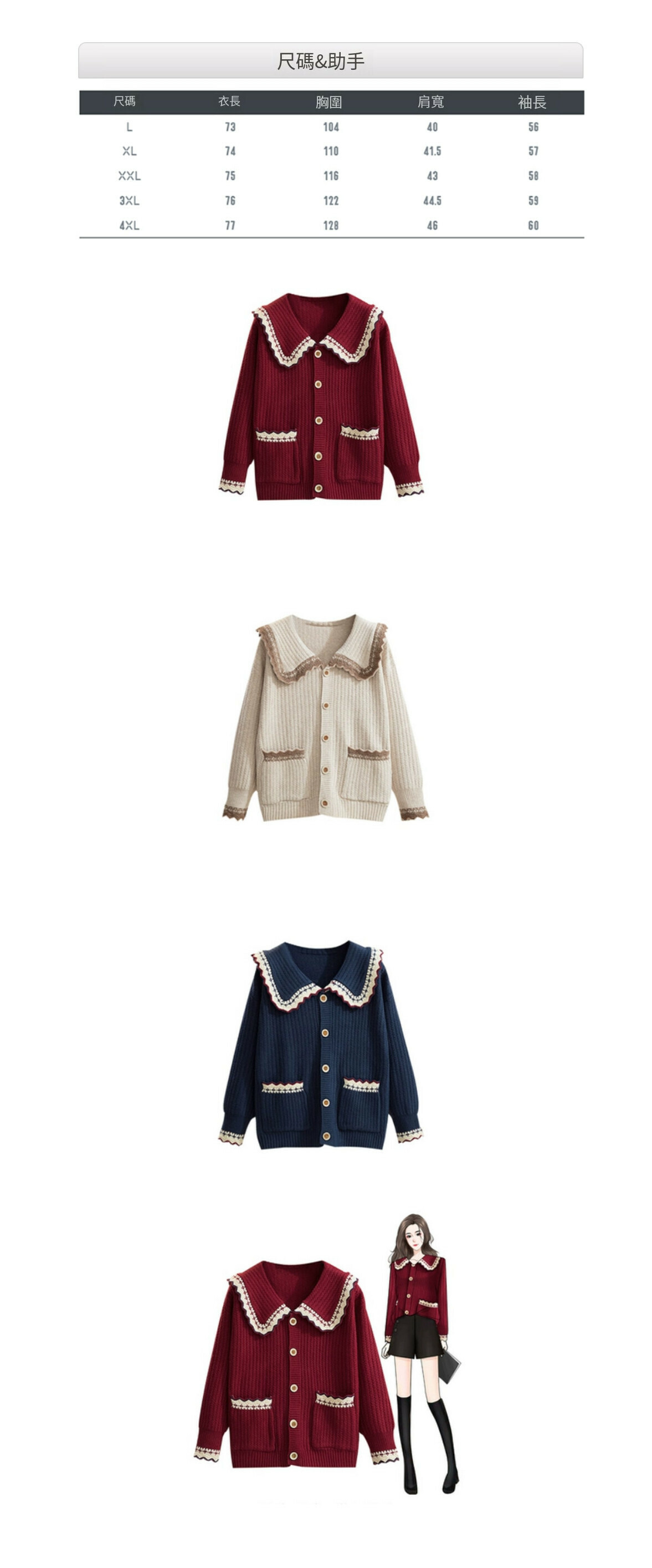 熱賣娃娃領針織衫【藏青色】【L-4XL碼】(下單後請聯絡客服確認發貨尺碼)
