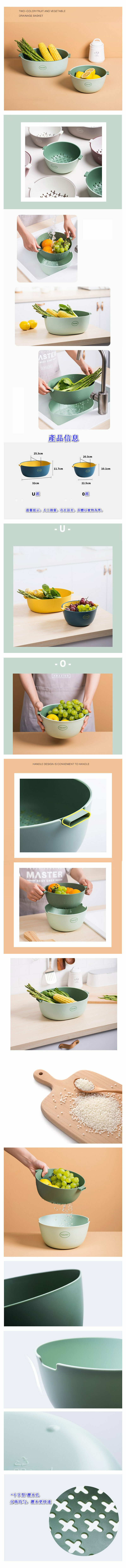 熱賣雙層塑膠果蔬盆瀝水籃【O派深藍色小號】【規格:22.5*10.1*20.3cm】