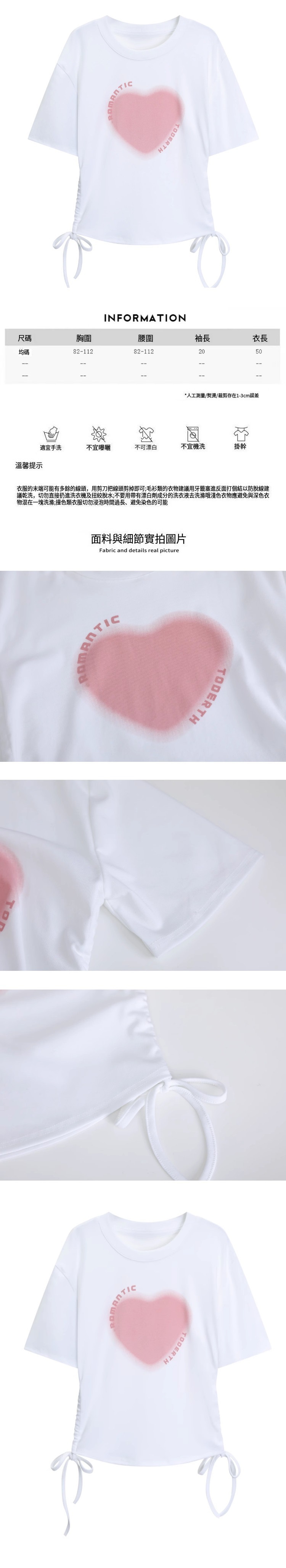 熱賣抽繩心形印花T恤(白色)(均碼)