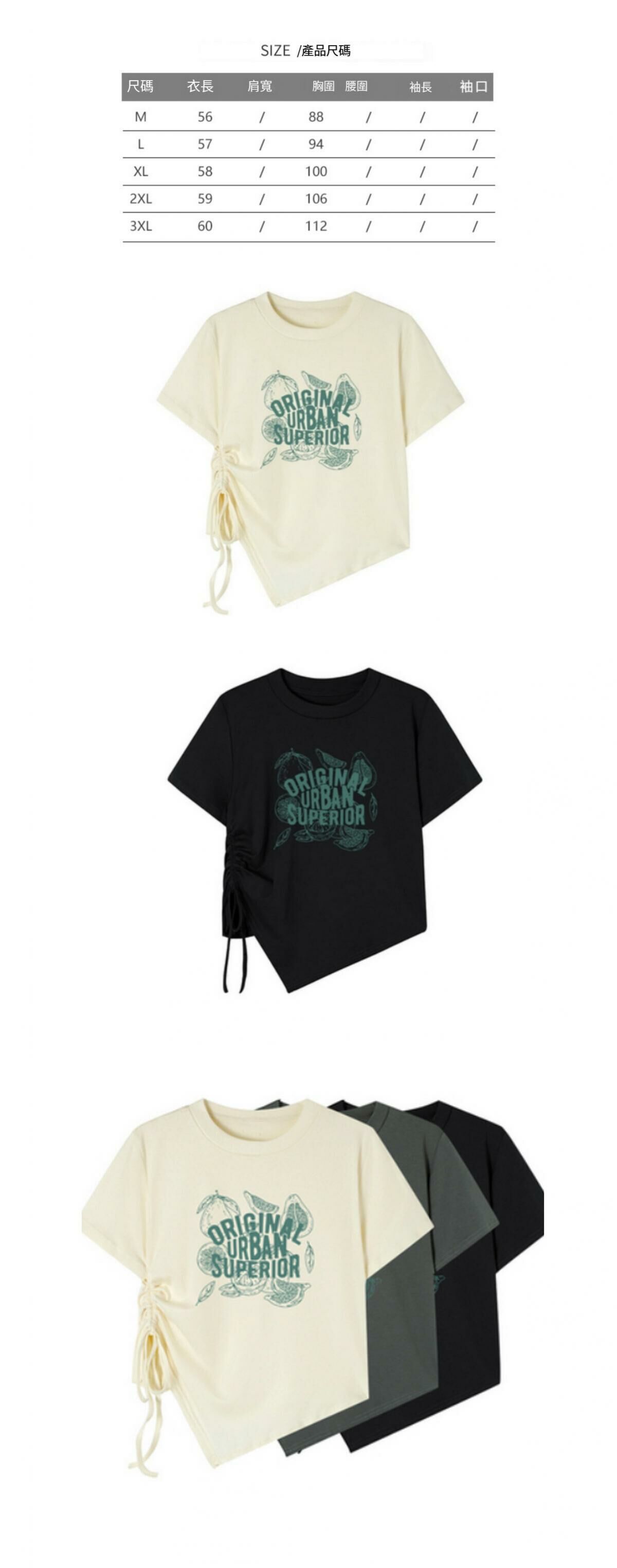 熱賣抽繩不規則短袖T恤【杏色】【M-3XL碼】(下單後請聯絡客服確認發貨尺碼)