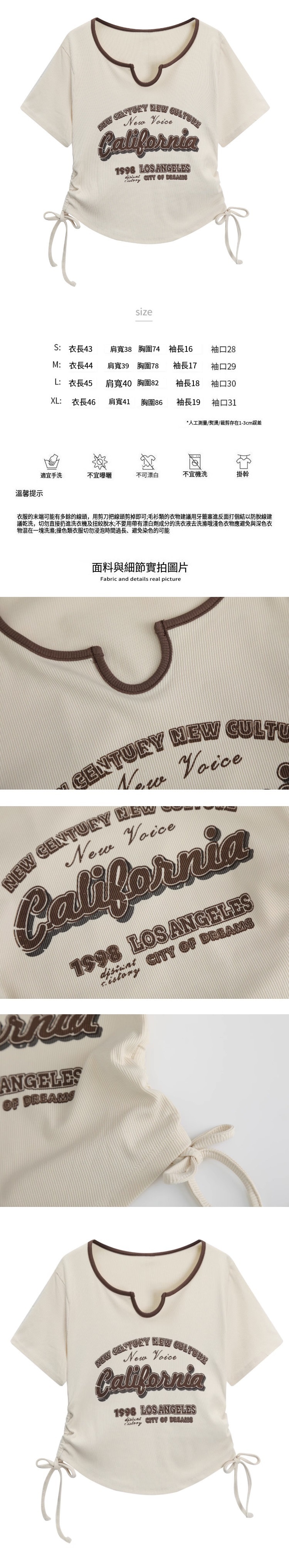 熱賣抽繩印花短袖T恤(杏色)(S-XL碼)(下單後聯絡客服確認發貨尺碼)