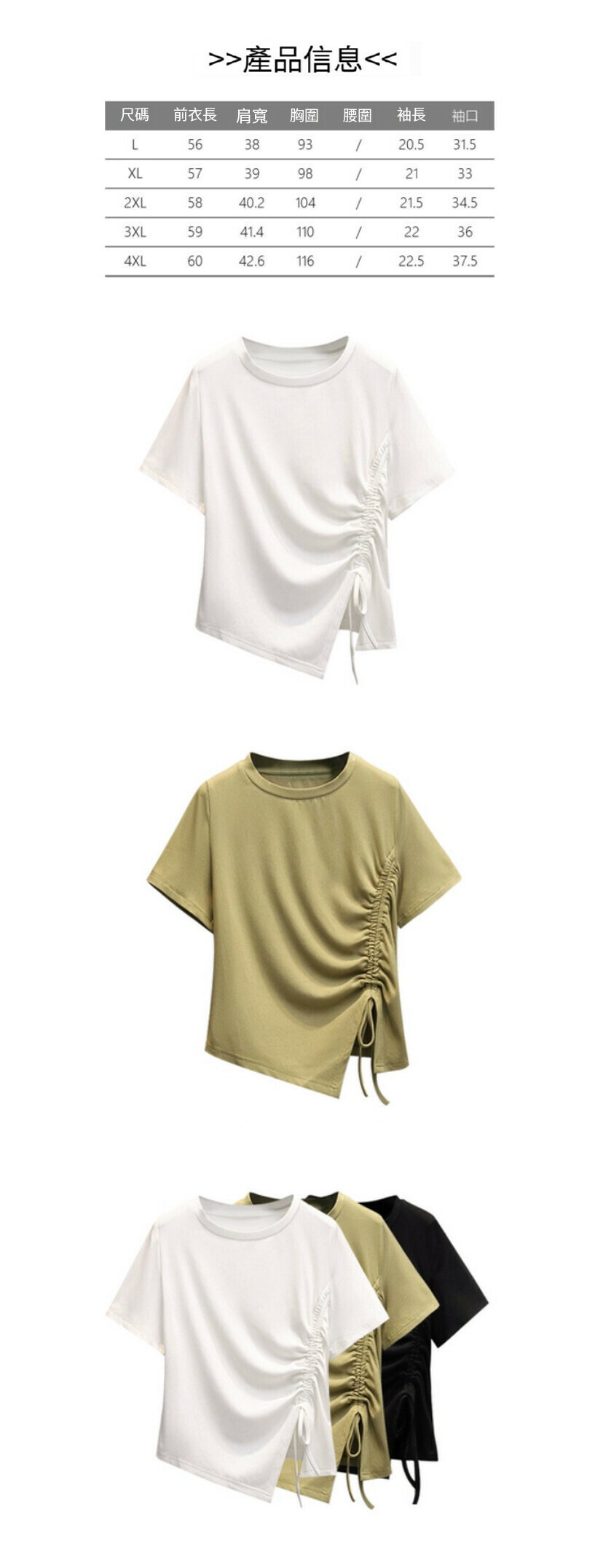 熱賣抽繩短袖T恤【白色】【L-4XL碼】(下單後請聯絡客服確認發貨尺碼)