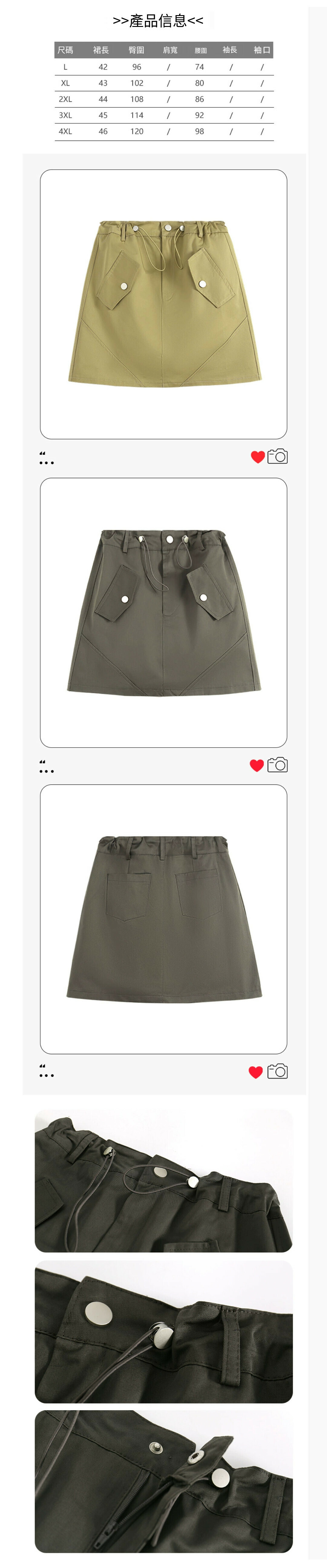 熱賣抽繩工裝半身裙【灰色】【L-4XL碼】(下單後請聯絡客服確認發貨尺碼)
