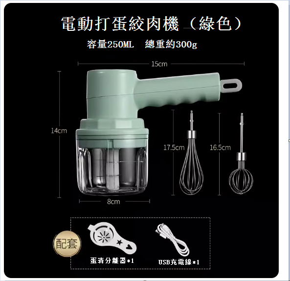 熱賣雙功能電動打蛋+絞肉(綠色❤送分離器+數據線)