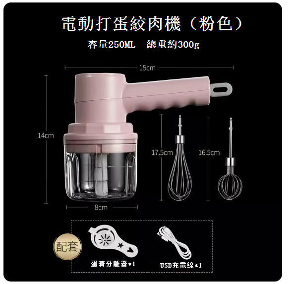 熱賣雙功能電動打蛋+絞肉(粉色❤送分離器+數據線)