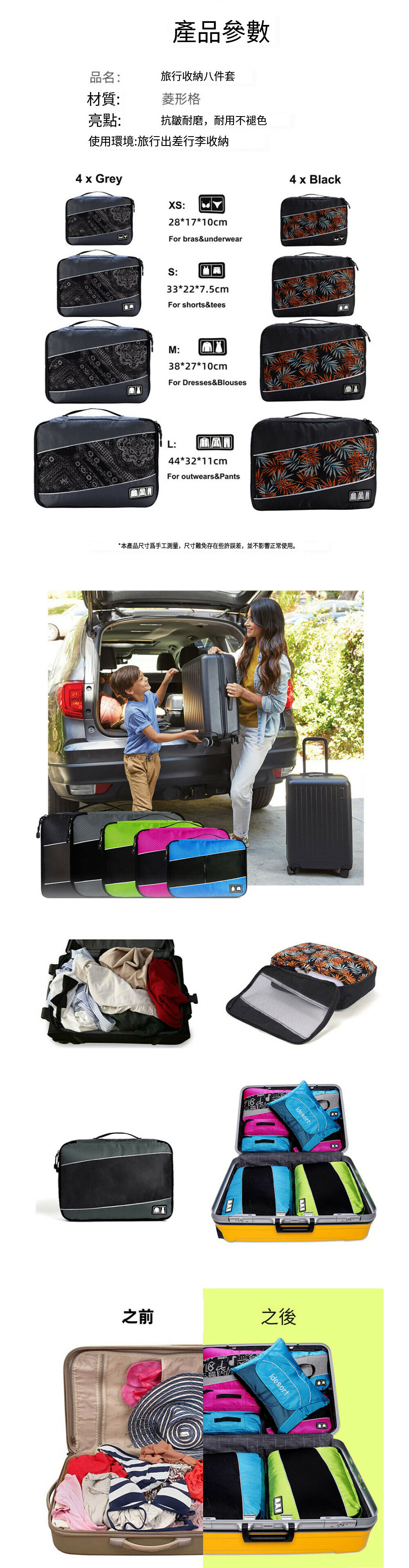 熱賣【八件套】旅行收納袋【綠色+藍色】
