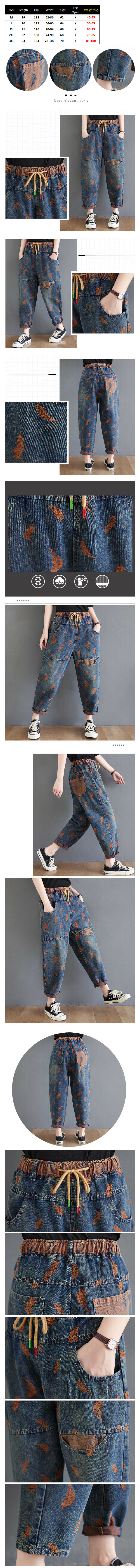 熱賣刺繡拼色寬鬆抽繩口袋彈力腰牛仔褲(M-XXXL碼)(下單後請聯絡客服確認發貨尺碼)