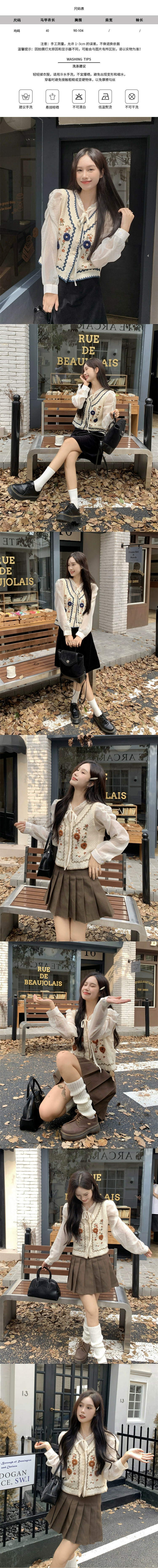 熱賣刺繡短款V領馬甲(均碼)(杏色馬甲)