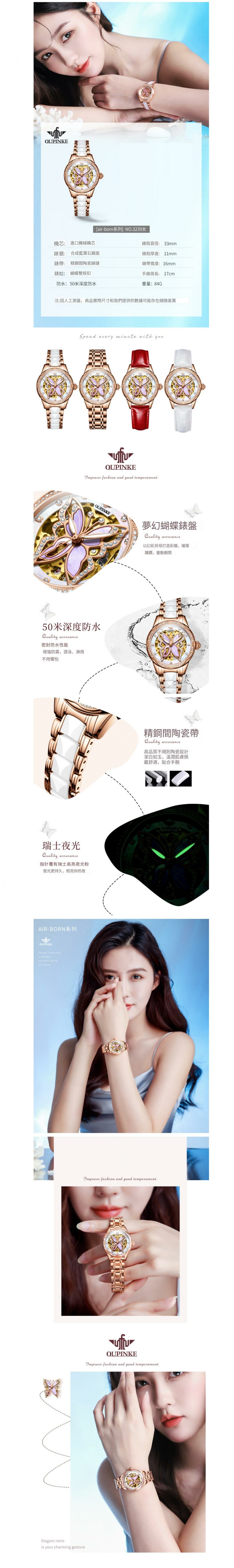 熱賣歐品客全自動機械錶女士手錶(間陶瓷鋼帶玫殼白麵女)