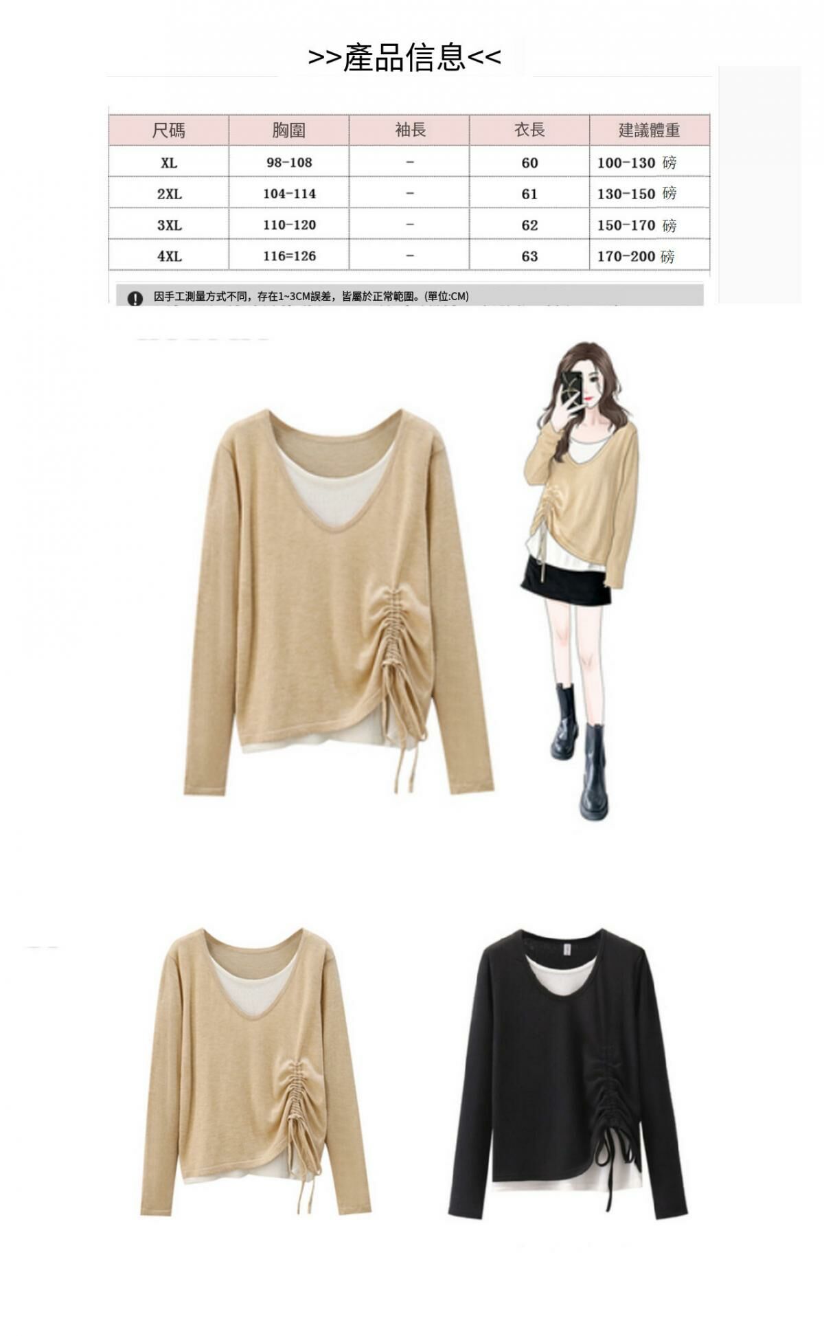 熱賣假兩件抽繩針織衫【杏色】【M-4XL碼】(下單後請聯絡客服確認發貨尺碼)