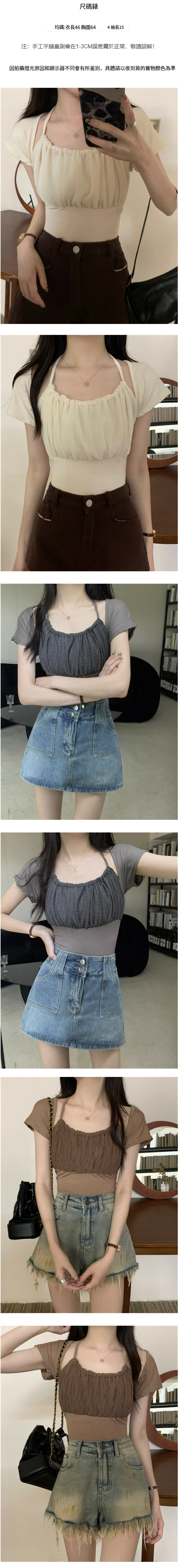 熱賣假兩件掛脖短袖【杏色】【均碼】