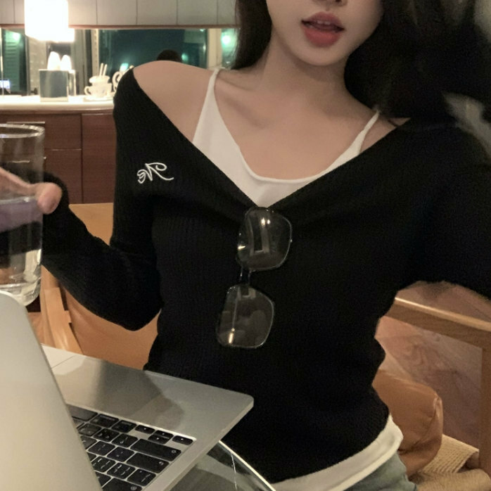 熱賣假兩件針織衫(均碼)(黑色)