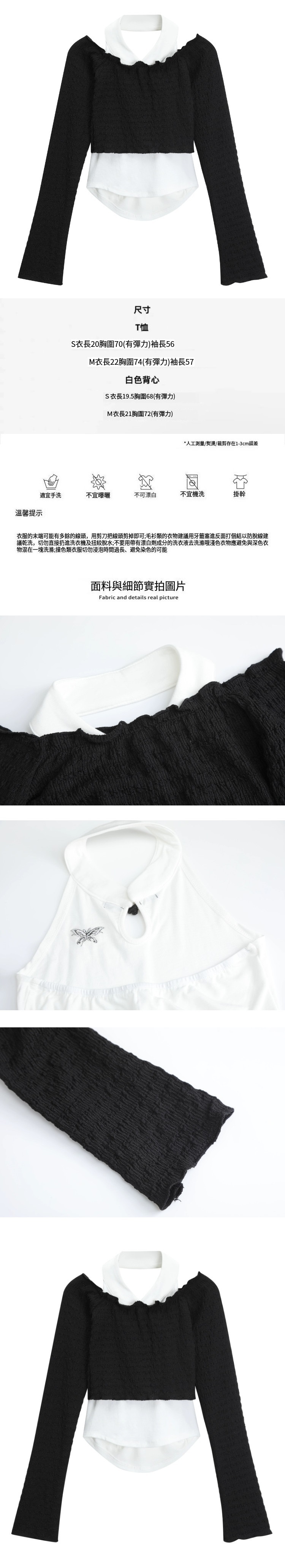 熱賣拼接撞色假兩件長袖T恤(白拼黑)(S/M碼)(下單後聯絡客服確認發貨尺碼)